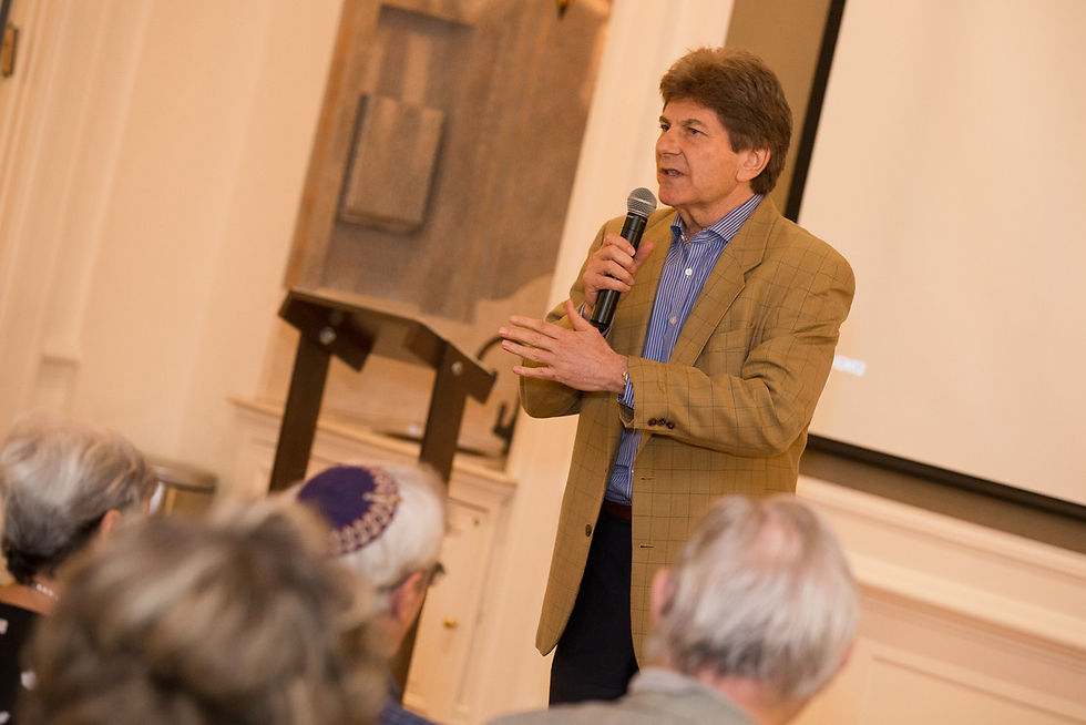 Rabbi Moshe Scheiner presenting Operation Wedding before the screening.